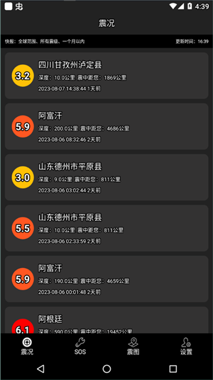 3、是一款能够获得全球范围内的实时地震灾情与历史地震信息的软件工具。