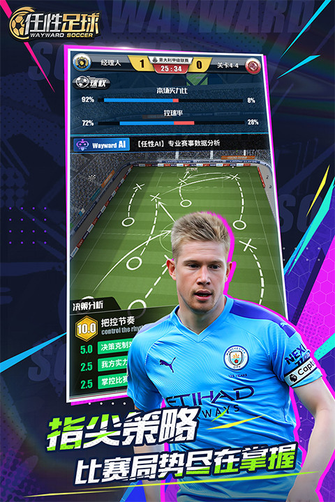 2、策略模拟+实时战术调整,考验你的足球大脑。