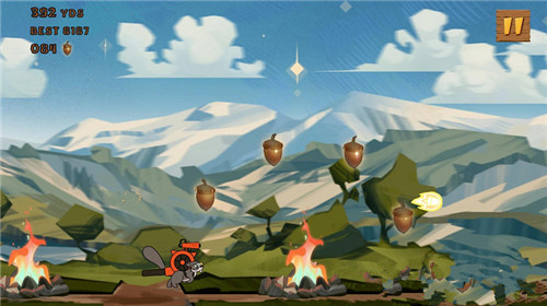 给玩家们带了一只萌萌的小松鼠,由他们控制,通过左右运动,获取松果,还能通过身上的喷射背包,进行多次跳跃,获取上面的松果,越过前面的障碍,同时游戏也给了他们许多的关卡,让他们体验到了许多的快乐。