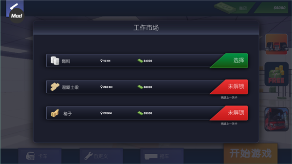 2、来进行货物的运输。在每一条道路上,你都可以进行挑战,并将各种重型货物,