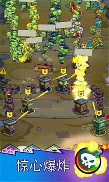 下载僵尸防御警戒线是一款非常典型的塔防类游戏,在这款游戏中你要建立起一座塔防工事,以抵抗丧尸的进攻,并且要运用不同的技巧和兵器,协助你的军队抵抗丧尸的进攻。每一关都有着各自独特的设定与难度,你必须针对目前的情况做出一个理性的部署与战略计划,方能成功通关。