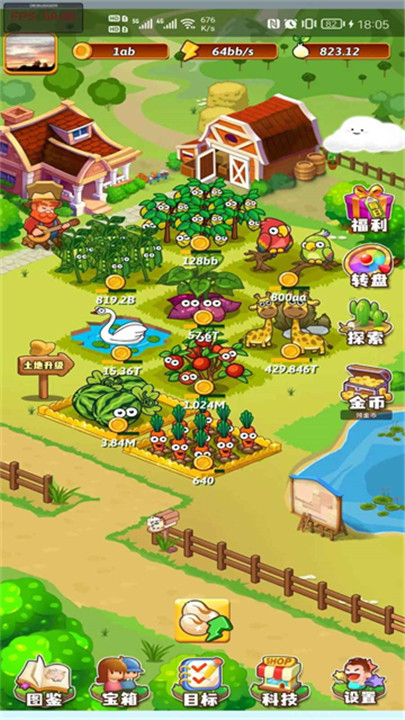 3、涵盖了植物、动物等多种庄园玩法,赚取金币解锁更多地块,享受经营乐趣。