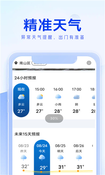 3、能够在气候发生改变的时候,将有关的消息及时地发送给使用者,以提示使用者关注气候的改变。