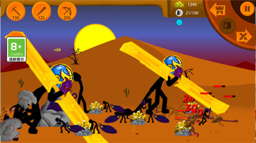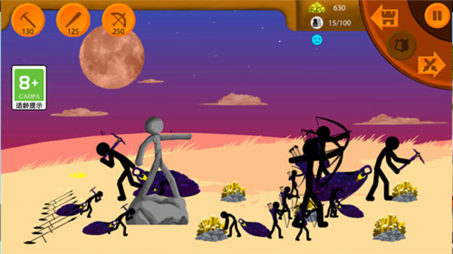 1、火柴人战略作战游戏,你可以通过征召各种火柴人士兵,并通过阵型和战术指导,来抵御敌方的攻击。