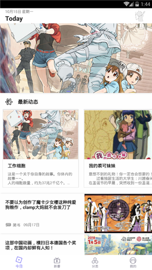 界面上没有任何的广告,非常的人性化,非常的方便,而且界面上都是关于动画的热门信息和资源,大家能够多来这里看看自己想要的内容,各种漫画都可以有。