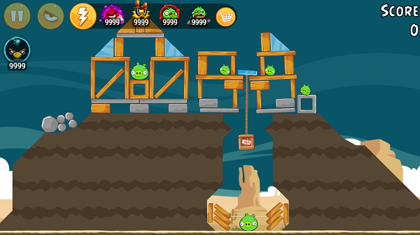 2、可以选择一只鸟作为目标。选好哪个飞鸟,运用战术,击败小猪队伍。