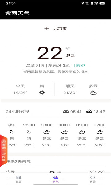 1、提供多种气象资料,如:空气质量,日出日落等。