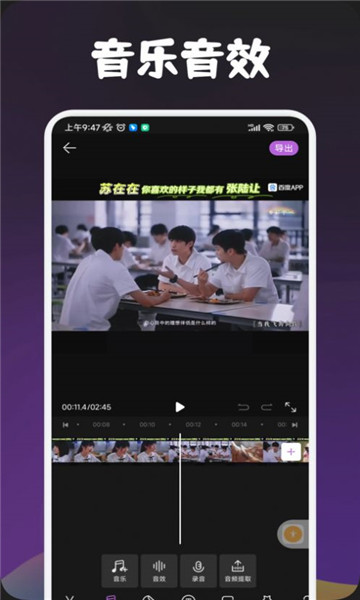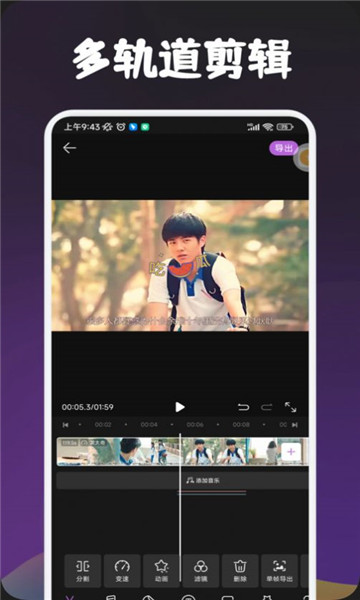 1、除了基础的录像编辑外,它还包含了很多其它的特性,比如添加音乐,添加滤镜,添加字幕等。
