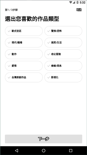 2、选择自己的喜好,然后按照自己的喜好和追漫纪录,为用户推送自己最喜欢的动漫。