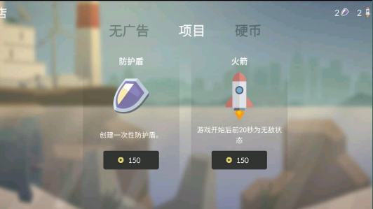 -可以通过购买来获取到护盾。创建一次性防护护盾,也可以花费金币来获取到20秒开局无敌状态。