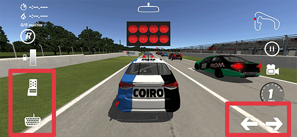 5、待红灯全部亮完后就可以使用左边的油门操控赛车前进,右下角箭头调整方向