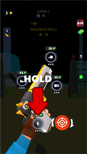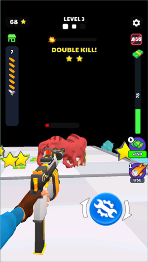3、是一个简单而又好玩的第一视角射击移动游戏,要拿着一把枪不断升级。