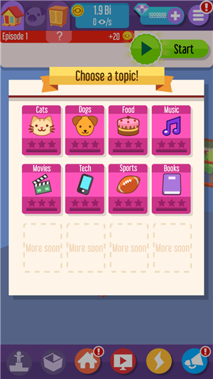 2、提升你的装备和家用录音棚,有很多不同的题材:猫咪、狗狗、食品、游戏、音乐、电影、极客等等。