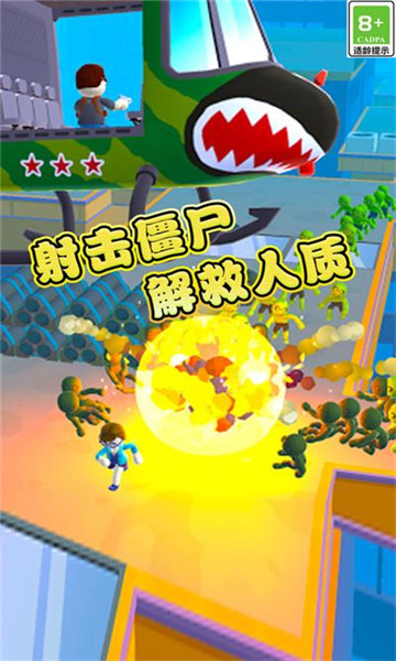 2、枪支不同,威力也不同,小心别打中了幸存者,将其他的敌人一一消灭。