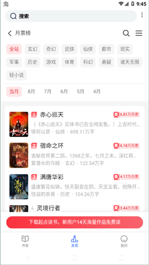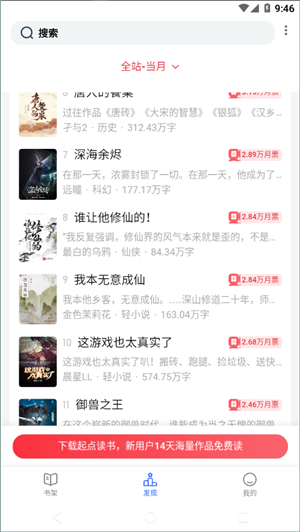 3、即时更新的长篇小说,百万千万的热门长篇小说,让你看到很多自己喜欢的东西。