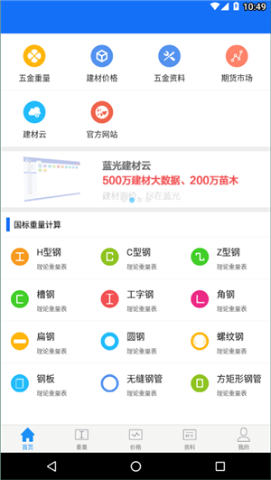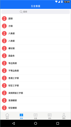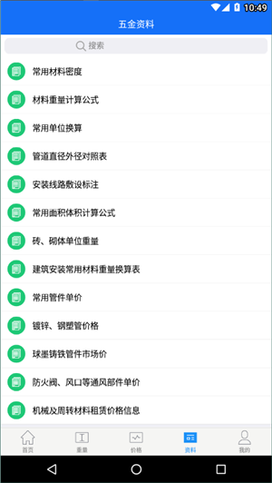 4、金属重量:可在任何时候查找对应金属制品的重量资料资料。