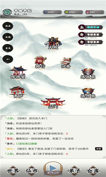 下载修个什么仙是一款十分有意思的模拟养成修仙类手游,在游戏中玩家们将会变成一代宗师,可以在这个世界中经营并建立一个属于自己的门派。开始的时候,只有三个人可以让他们进行挑选,通过慢慢地招收新人,来增强自己的门派,拥有上百种技能等着你来使用,让你体会到一种特别爽快的战斗体验。