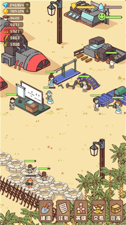 2. 可建的东西花样挺多,有帐篷、蒸汽电机、农田、水厂、防御沙包、拒马,种类多样,每种建筑消耗的资源各异,有些还得等人手够了才解锁。