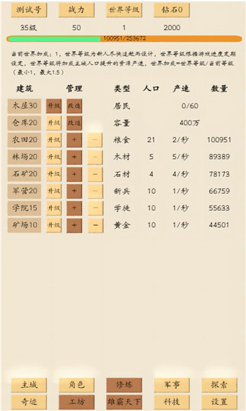 下载荒古文明是一款以文字为基础的建筑类游戏,你要在这个荒古年代建立起属于自己的文化,创造出属于自己的修炼文化,将你带入时间的洪流之中,从一个荒古年代一步步走来,创造出一个崭新的文化,并带领着这个文化走向昌盛,你要做好资本、物资、人力等方面的计划,让这个文化更加强大。