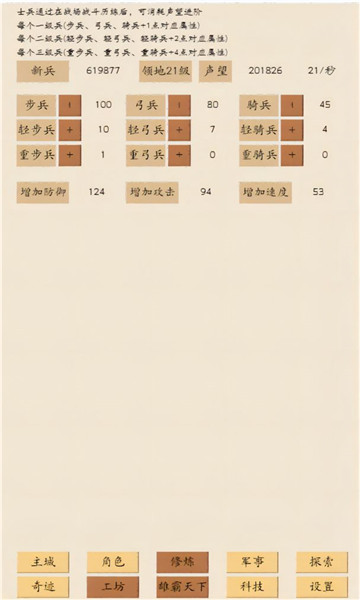 2、领袖人物的培养,伙伴的招募,军队的管理,探索与战斗,奇迹的建造,科技的发展,以及数组的研究等等。缔造您的远古传说!