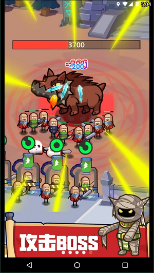 5、每个关卡都有一个boss,玩家需要用制造出的英雄打败boss,获得奖励并发展英雄工厂。