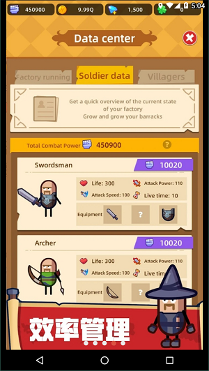 2、工厂内有专门的武器设备,可以为村民装备不同武器,根据装备的武器决定英雄职业。