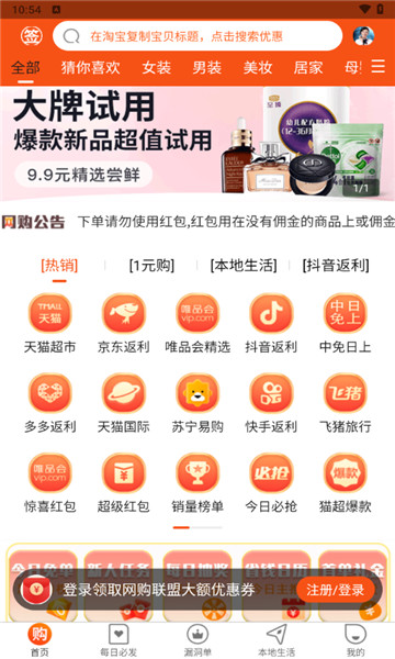 下载网购联盟是一个很专业的购物省钱的网站,在这个网站上买东西,不但能得到很大的折扣,而且还能获得一定的折扣,简直就是一个购物爱好者必不可少的APP。聚集了大量优秀的商户,一旦收到货物,就可以获得提成,并且提供各种不同的提取方法,让你花最小的成本,买到最好的东西。