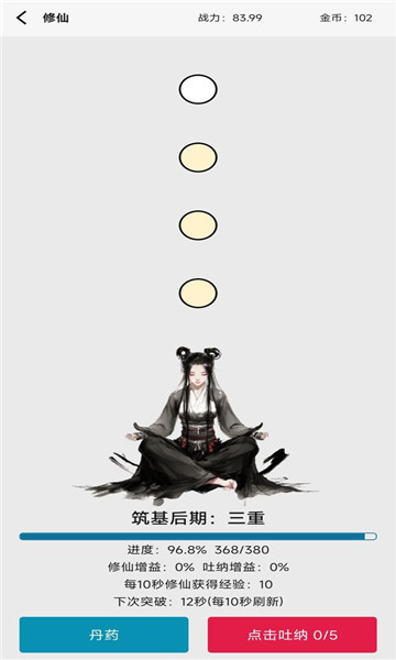 3、成为一名真正的修士,通过修行功法和人物等级,逐步增强自身。