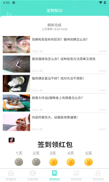 2、它还包含很多有意思的特色,例如:猫语词典,每日的生活习惯,让你对你的爱宠有一个更好的认识。