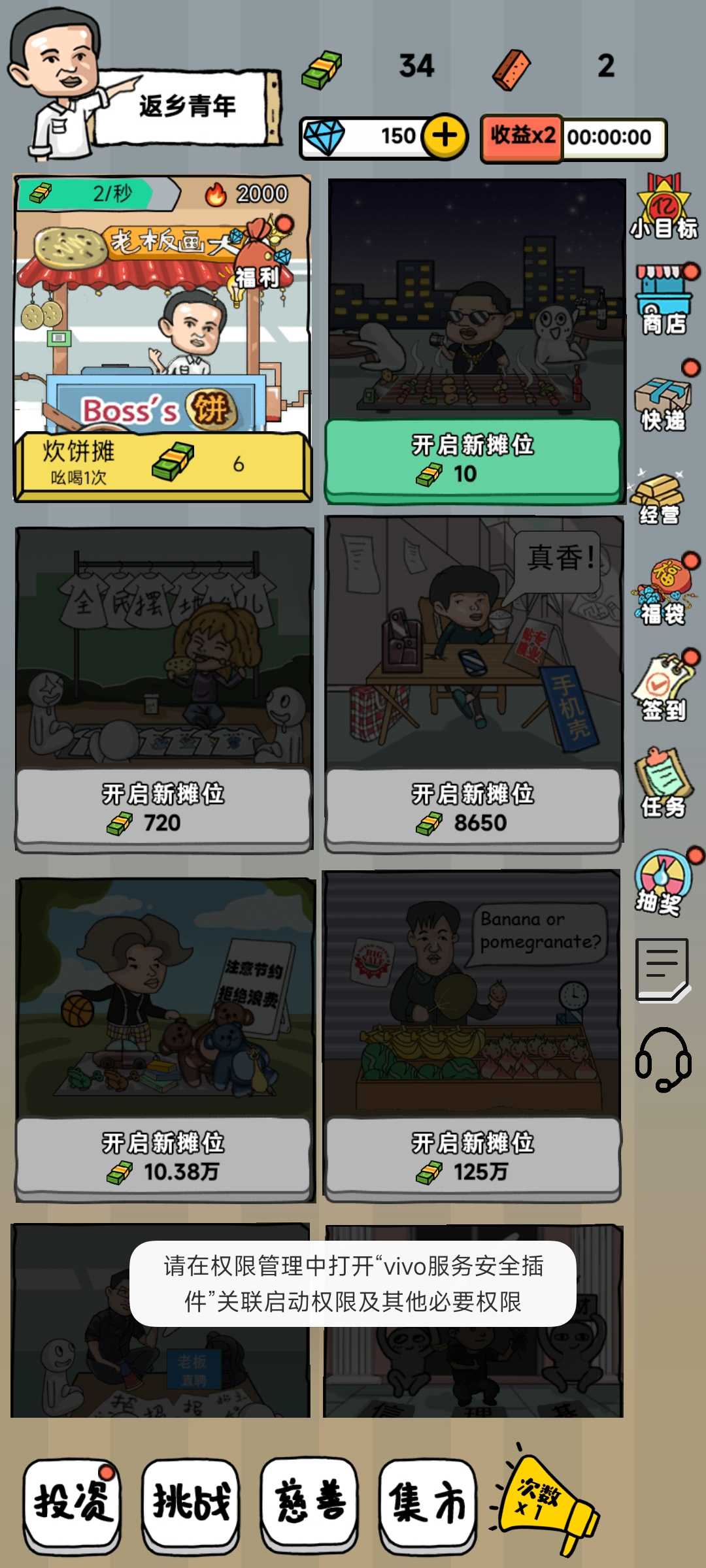 2、开启一个更加真实的游戏世界,每天都要不断的经营好自己的摊位,各种风格都有。