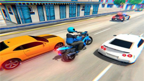 1、在这款游戏里,你可以骑着自己的机车,在闹市的街道上和别人比速度。