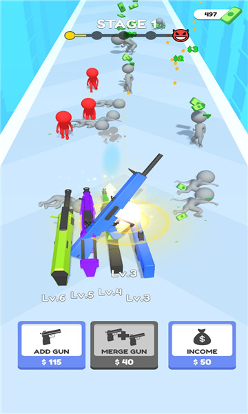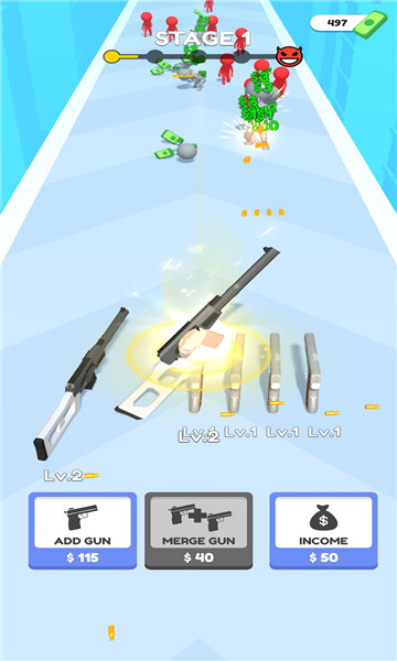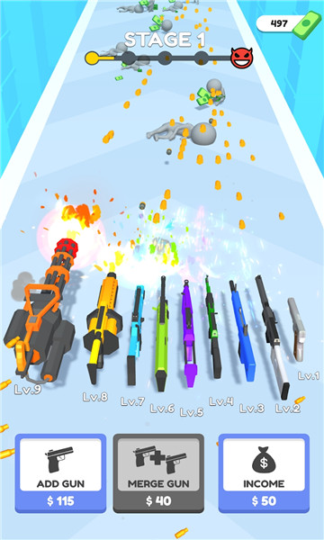 下载闲置喷枪大师是一款简约的、具有挑战性的小游戏,你可以扮演一把色彩各异的喷枪,让你专注于自己的枪法。收集到更多的道具,向眼前的敌人开火,就能轻松通关。努力获得更好的成绩,更好的坚持到最后,解锁更有难度的关卡。