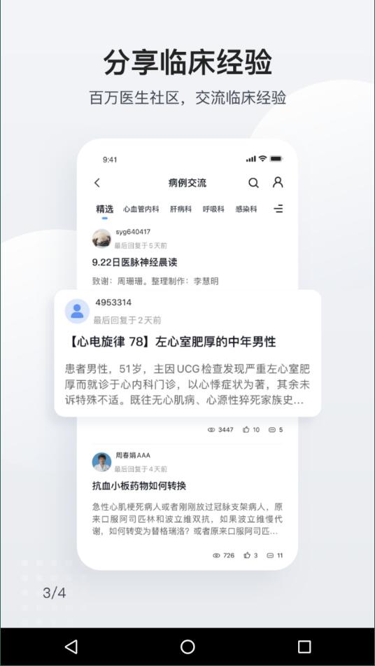 1、分享临床心得,建立百万医师社群,互相分享临床心得,为更多的用户带来咨询服务。