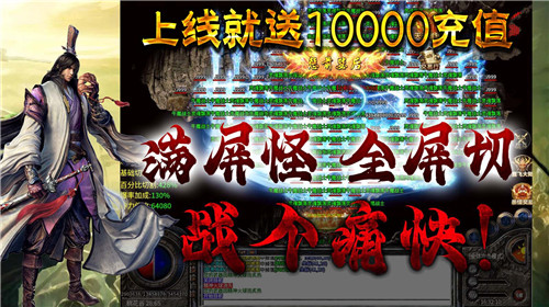 3、装备好打:上线就有满攻速,范围切割,自动拾取,轻松增加战斗力。狂暴之力增加大量属性值,可获得(半月弯刀)技能。
