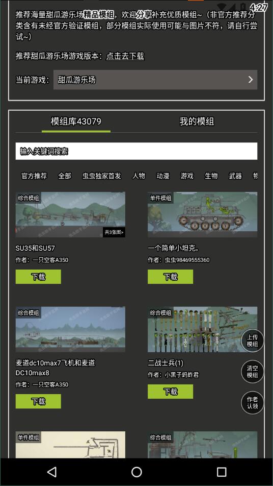 下载虫虫助手甜瓜游乐场模组工具中玩家能在此尽情地进行轻松惬意的压力挑战,它能加入各种地图资源中,一款有趣的移动辅助工具程序,拥有上百种不同的道具和模块,让你尽情地进行轻松又舒服的压力挑战。