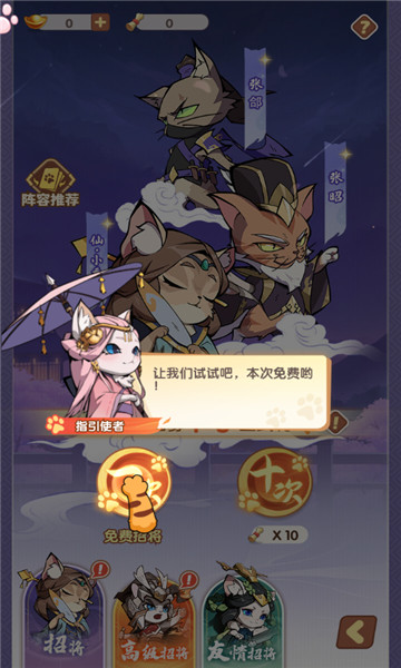 下载喵将大作战为玩家们提供了一套全新的三国将军作战玩法,并且让玩家们可以继续尝试不同的游戏方式,在这个游戏中,玩家可以与猫咪作战,三国时代的将军被猫咪变成了猫咪,还有各种各样的小猫小狗会为您提供更多的娱乐,让您能够感受到更加有趣的战斗方式。