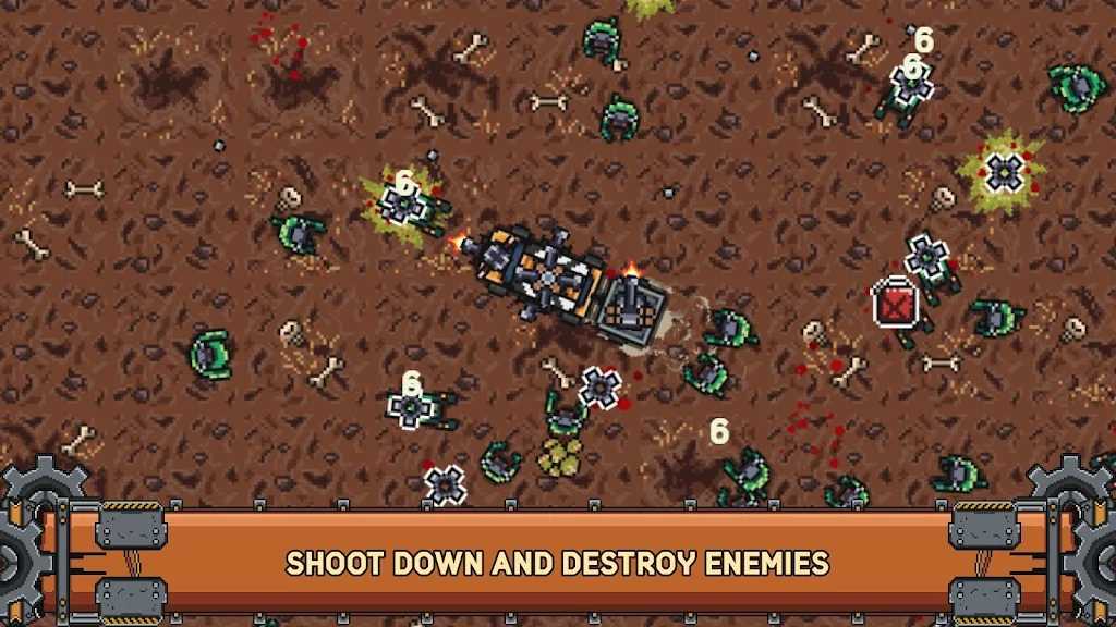 3、敌方种类繁多,针对敌方的不同特性选用不同的兵器,升级车辆,提高自己的存活率。