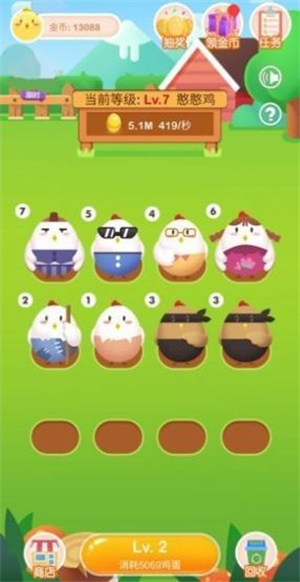 1.养成属于我们自己的小鸡,提升等级,解锁更多个品种的小鸡。