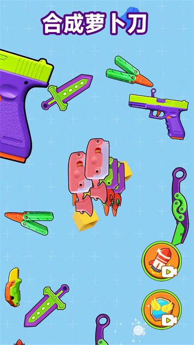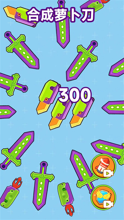 下载合成萝卜刀游戏让它们融为一体,玩家都可以通过不断的尝试和练习,在这里我们还会遇到各种挑战和关卡,或者转化成令人惊叹的其他萝卜小玩具,它让玩家有机会尝试并掌握各种独特的合并技巧,让你的萝卜刀升级成为无敌利器,在这个过程中你需要注意躲避比自己体型更大的小刀,在这款游戏中刚开始你只是一把小小的萝卜刀。