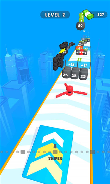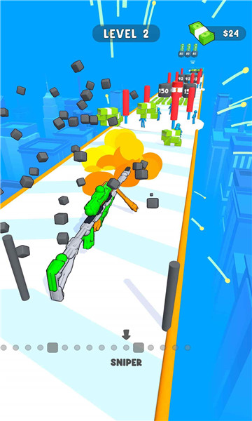 下载我的武器贼炫是一款很有趣的跑酷闯关类游戏,通过后可以获得更多的奖励。对速度的要求很高,整个过程也更具挑战性。新的挑战给你新的经验,改进你的运营技能,迅速通过各个等级,注意不要碰到障碍。丰富的跑酷挑战等你来尝试,带给玩家无尽的欢乐。