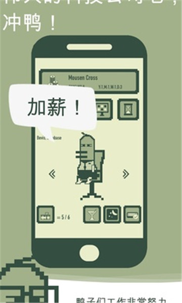 下载冲鸭科技是一款像素风格的模拟经营类游戏,游戏里你会经历一段完全不同的创业过程,你要运营一家科技公司,不仅要确保企业的各项资本运作,而且要对员工的心情和生活状况进行监督,从而提高企业的工作效率,提高企业的收益,只有通过对企业的科学管理和运营,企业才会不断地发展壮大。
