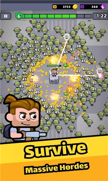 下载幸存者不死狂暴是一款简单的画面风格的生存类休闲冒险,在这款游戏里你要做的就是在丧尸的世界里,用自己的武器杀死所有的丧尸,赚取金钱和经验,然后再去商店里兑换更强的武器,更好的完成属于你的刺激挑战。