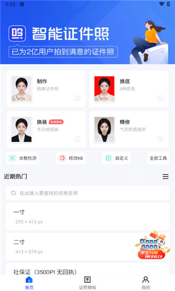下载智能证件照是一款具有实用性的手机摄影应用程序,能够为广大客户提供最佳的照片照片及需求,能够满足各种需要。这是一种非常便捷的方式,再也不需要去照相馆前排着长队了,有了这款软件你就可以轻松的解决这个问题,而且还可以通过PS来解决这个问题。