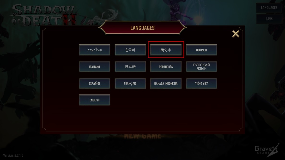 1、下载并打开游戏后,玩家点击右上角的语言可以设置选择“简化字”即可切换中文。