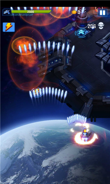 2、在宇宙中摧毁敌方战舰,提升战机和主力兵器,增强自身实力。