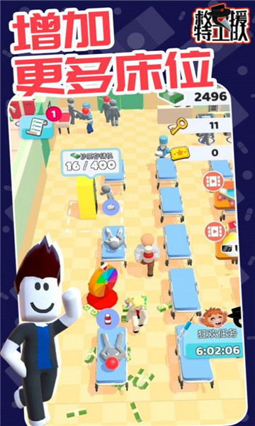 1、在游戏中获得更多的物资,用来更新你的医学装备,提高你的治疗效果与成功率。