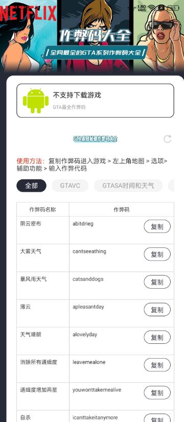 下载GTA系列秘籍作弊码大全中你会遇到很多有趣的角色和剧情,你会遇到很多有趣的角色和剧情,你会遇到很多有趣的角色和剧情,你会拥有一个巨大的人物角色系统,在这片黑暗之源的世界中,你可以自由地进行你的角色扮演,你可以按照自己的爱好去做你想做的事情。