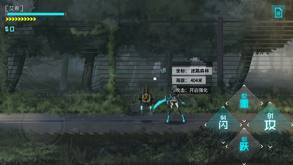 2、我们可以通过左边屏幕来控制艾希的左右方向移动,右边分别是闪、重、攻和跃,也就是闪避、重击、普通攻击和跳跃,玩家需要灵活运用不同的按钮来获得更好的游戏体验,