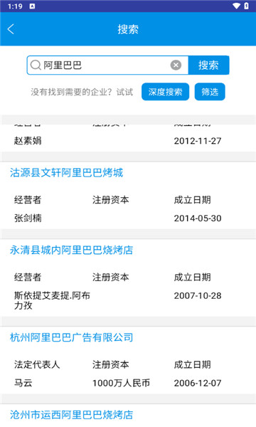 下载云企查是一个专门的公司资料查询软件,各种公司的具体资料都在这儿,您能查看更多公司的资料。它汇集了国内数千万个企业的工商信息、诉讼执行信息、专利商标等信息,其中法定代表人、股东、董事、监事等高级管理人员的基础信用信息,已经达到了数十亿之多。