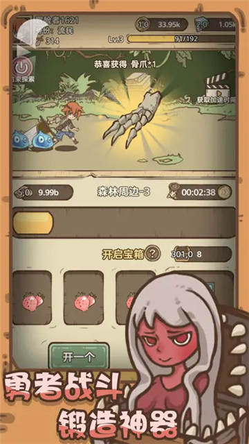 2、通过锻造神器提高角色的战斗力,来和森林里的怪物战斗获得稀有材料吧。